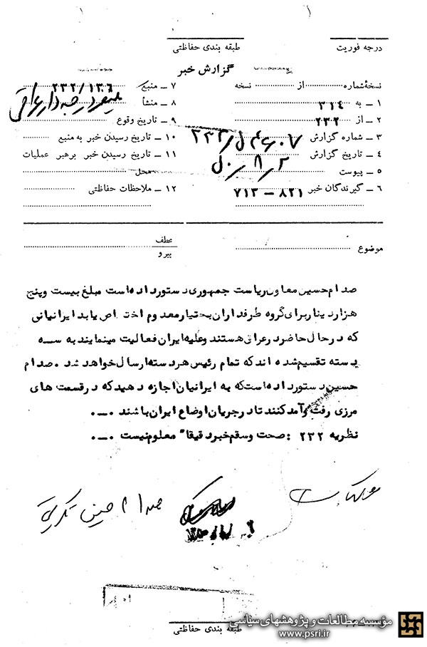 مساعدت مالی صدام حسين به گروه طرفداران تيمور بختيار