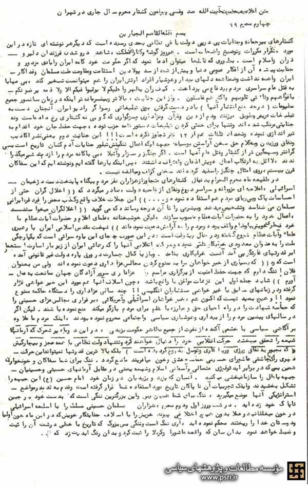 اعلامیه آیت الله صدوقی در باره کشتار محرم